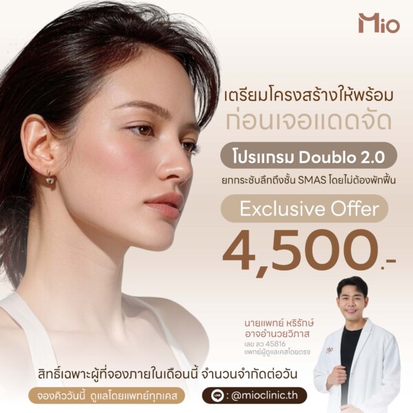 โปรแกรม Doublo 2.0 ยกกระชับลึกถึงชั้น SMAS ช่วยให้ผิวแน่น กรอบหน้าชัด โดยไม่ต้องพักฟื้น เหมาะสำหรับเตรียมผิวก่อนสงกรานต์