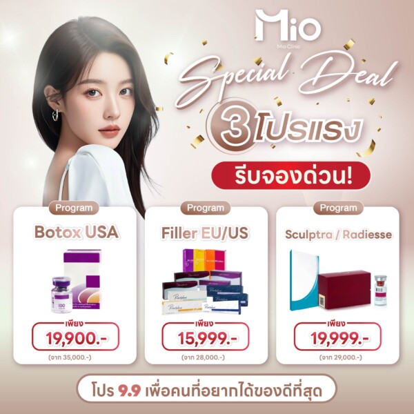 โปร 9.9 คลินิกความงาม MIO CLINIC พระราม 9 ลดแรง HIFU, Botox, Filler, Pico Laser และแพ็กเกจดูแลผิว จองสิทธิ์วันนี้ รับจำนวนจำกัด!