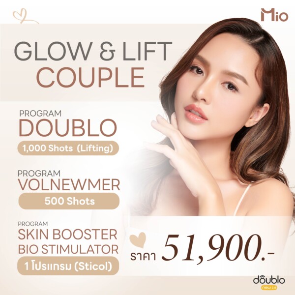 Glow & Lift Couple โปรแกรมยกกระชับและฟื้นฟูผิว ด้วย Doublo 1,000 shots และ Volnewmer 500 shots ที่ Mio Clinic ราคา 51,900.-