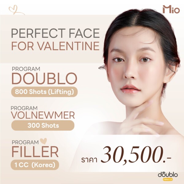 Perfect Face for Valentine โปรแกรมดูแลรูปหน้า ด้วย Doublo Volnewmer และ Filler ภายใต้การดูแลของแพทย์ ที่ Mio Clinic ราคา 30,500.-