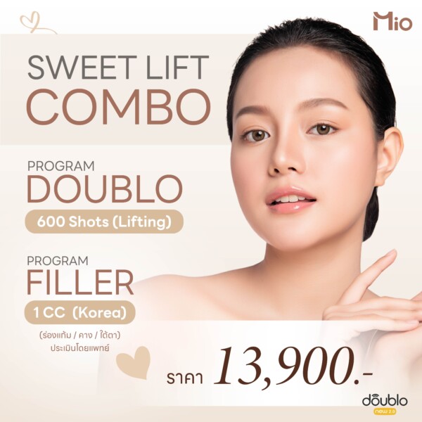 Sweet Lift Combo โปรแกรมยกกระชับด้วย Doublo 600 shots และ Filler 1 cc ประเมินโดยแพทย์ ที่ Mio Clinic ราคา 13,900.-
